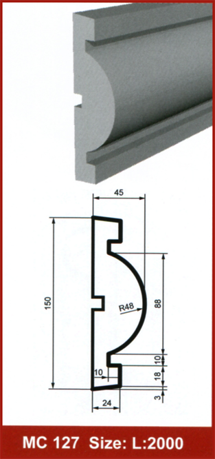 MC 127 Ширина(высота): 150мм Толщина: 45мм Длина: 2000мм
