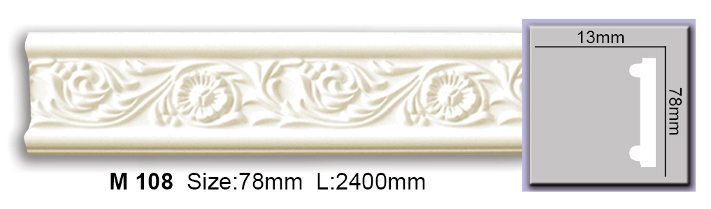 Наружные *размеры, HxW: 78х13мм Жесткий молдинг: M 108 |