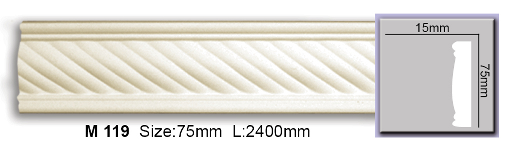 Наружные *размеры, HxW: 75х15мм Жесткий молдинг: M 119 |