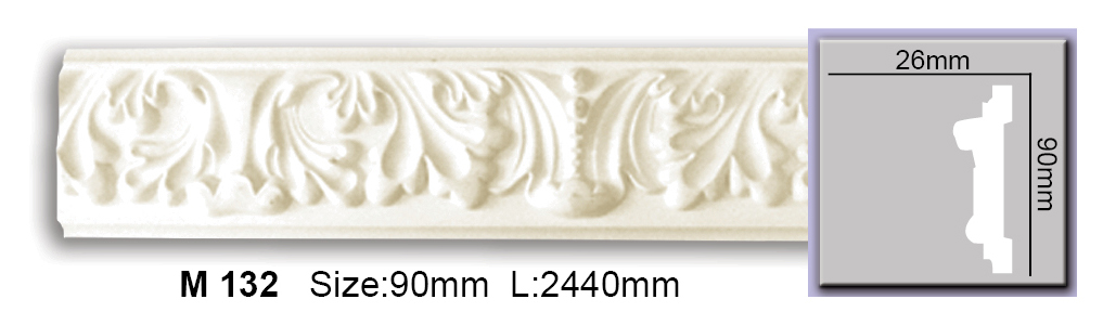 Наружные *размеры, HxW: 90х26мм Жесткий молдинг: M 132 |