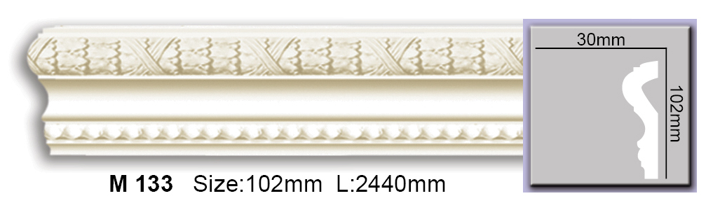 Наружные *размеры, HxW: 102х30мм Жесткий молдинг: M 133 |