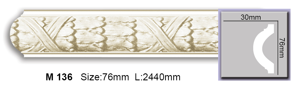 Наружные *размеры, HxW: 76х30мм Жесткий молдинг: M 136 |