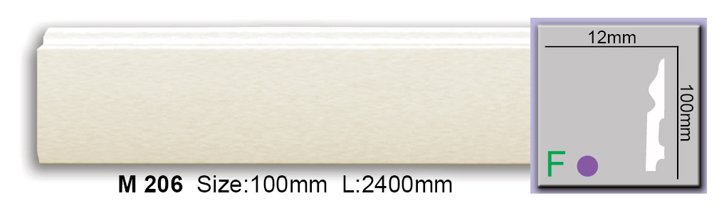 Наружные *размеры, HxW: 100х12мм Жесткий молдинг: M 206 Гибкий молдинг: М 206F |