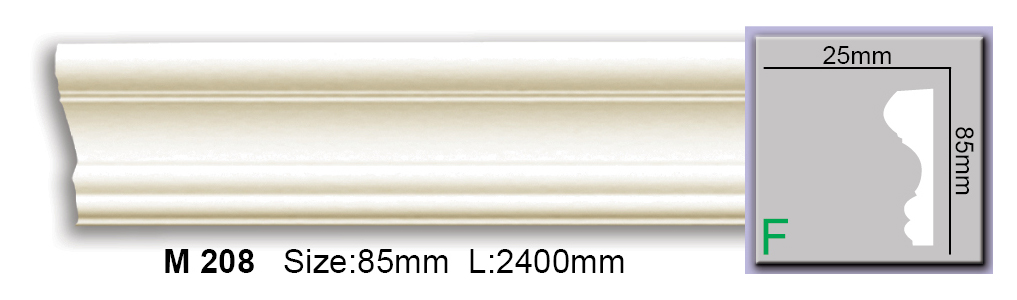 Наружные *размеры, HxW: 85х25мм Жесткий молдинг: M 208 Гибкий молдинг: М 208F |