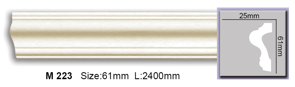 Наружные *размеры, HxW: 61х25мм Жесткий молдинг: M 223 |