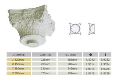 *Посадочный диаметр, в данном случае, обозначает диаметр ствола полуколонны, для которой предназначена та или иная капитель или база. |